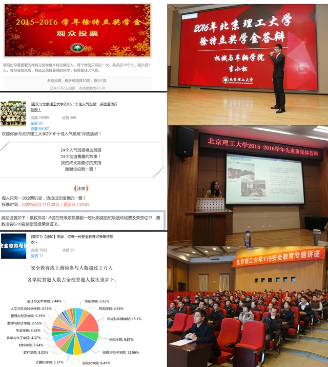 为进一步做好新形势下北理工学生的思想政治教育工作,结合习近平总书记在全国高校思想政治工作会议上提出的因事而化、因时而进、因势而新的工作要求,北理工学生工作处积极开展网络思想政治教育工作。